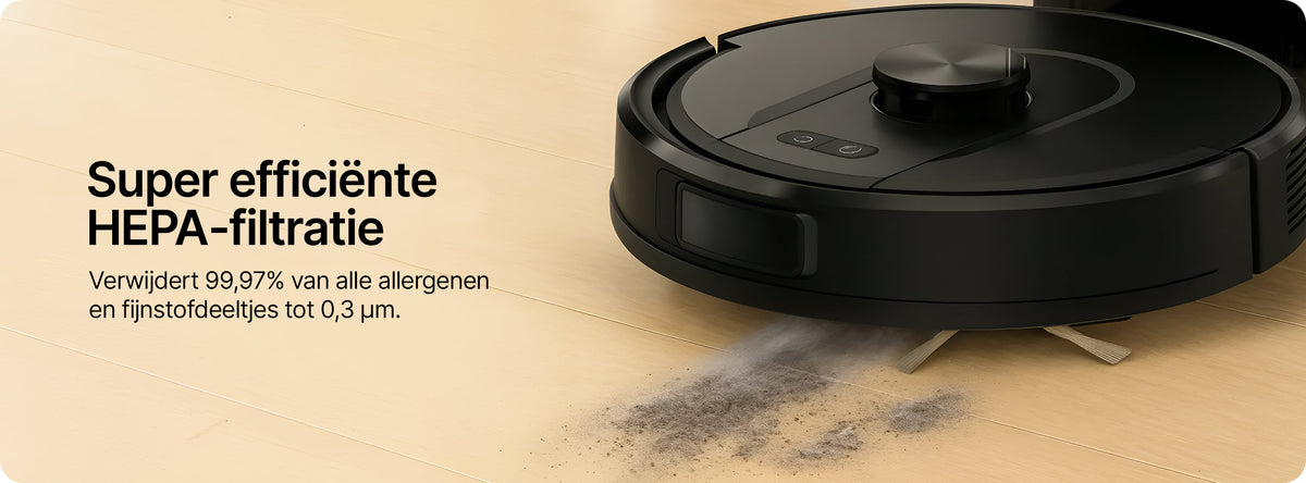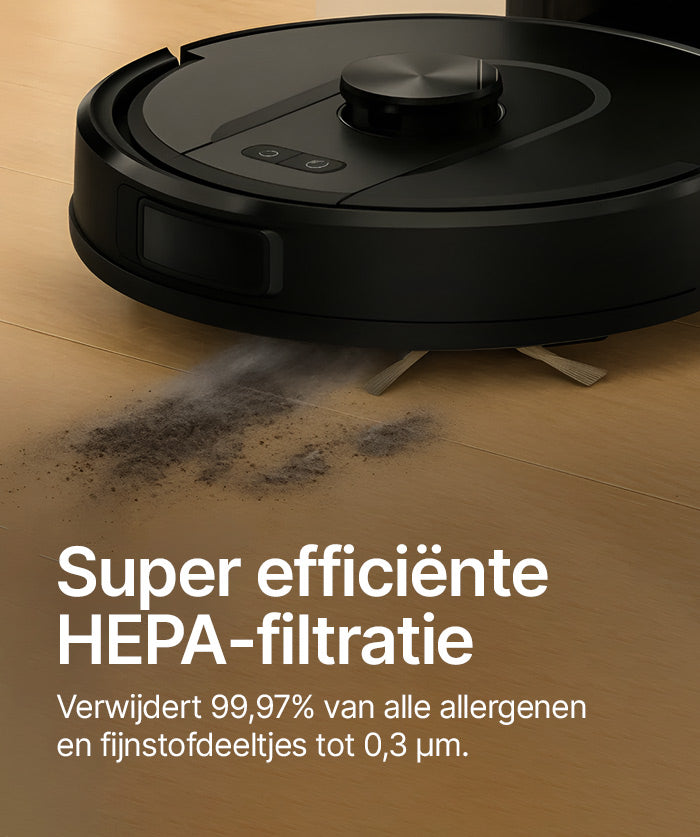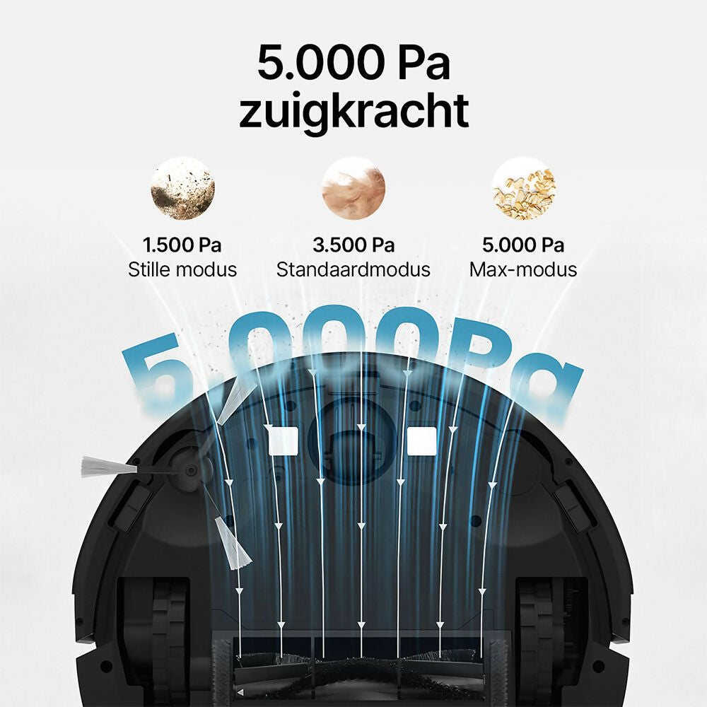 - ✓ 5.000 Pa zuigkracht: Met de nieuwste HEPA-filtertechnologie verwijdert de W11 tot 99,97% van alle deeltjes – van dierenharen tot de kleinste stofdeeltjes. In tegenstelling tot gewone robotstofzuigers blijft de zuigkracht constant hoog, zelfs als de opvangbak vol raakt.