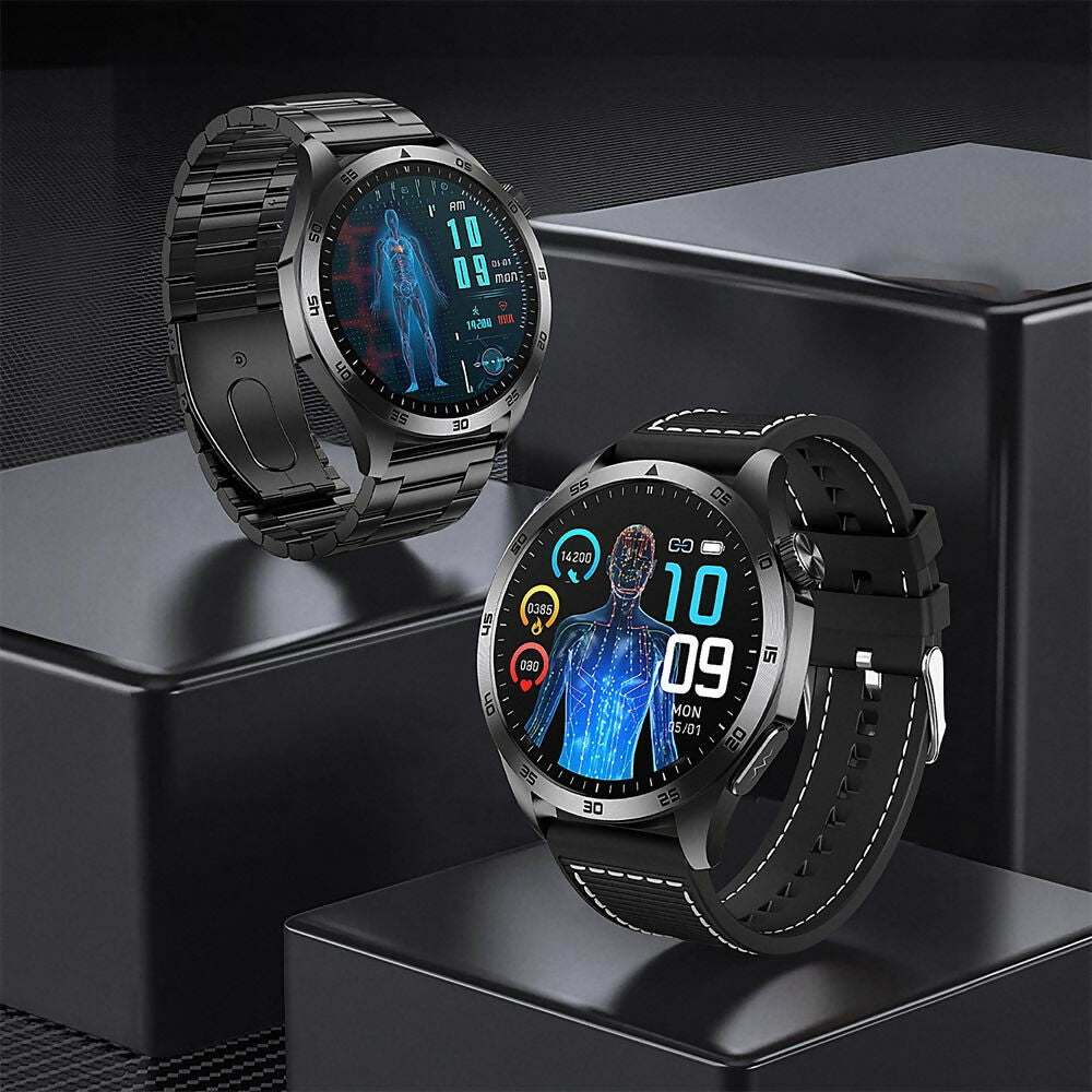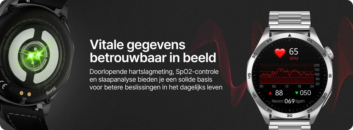 - ✓ Je gezondheid in beeld: hartslag, bloeddruk*, SpO₂ (infrarood+rood licht “True SpO₂”) en ECG/HRV, stress- en vermoeidheidsdetectie.
