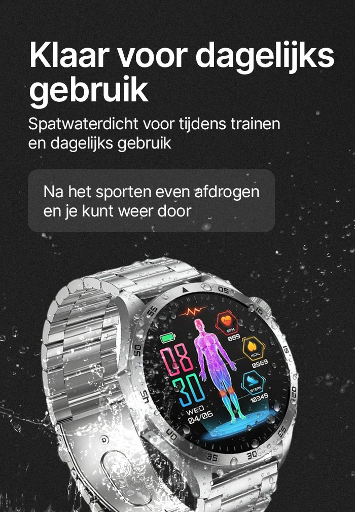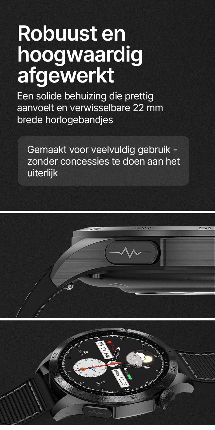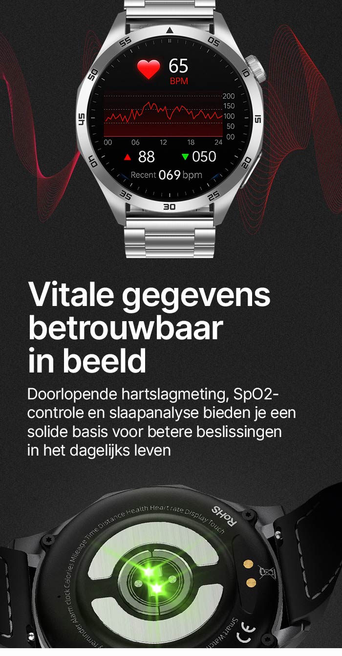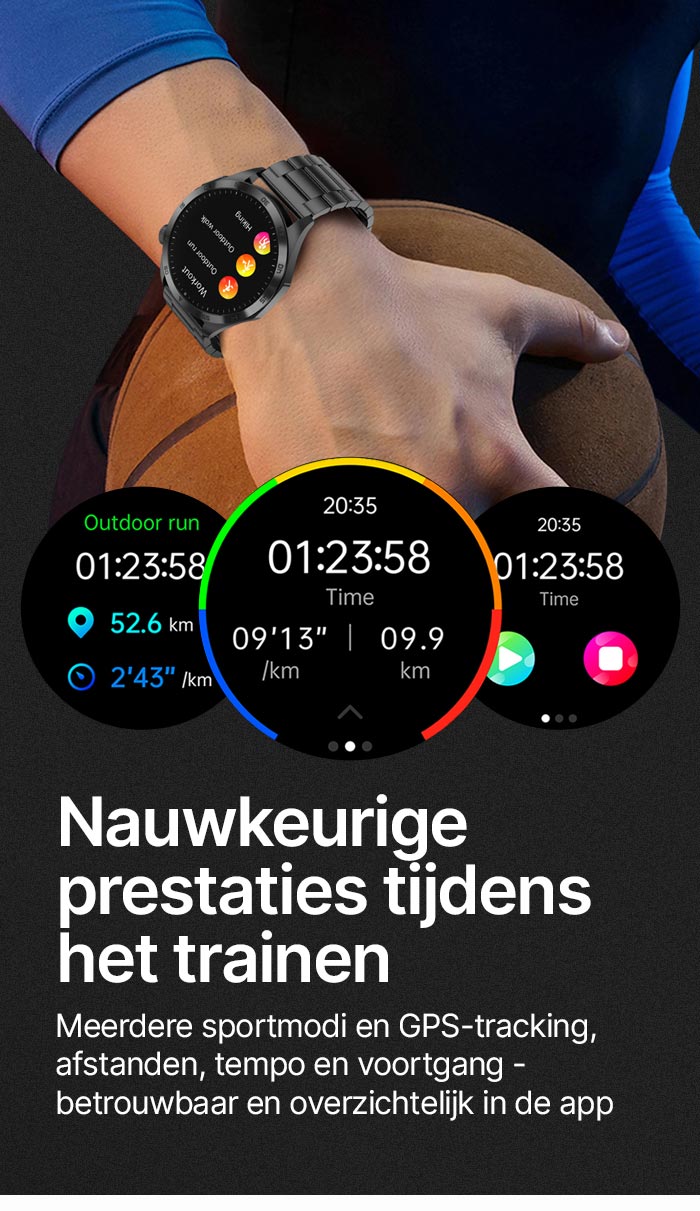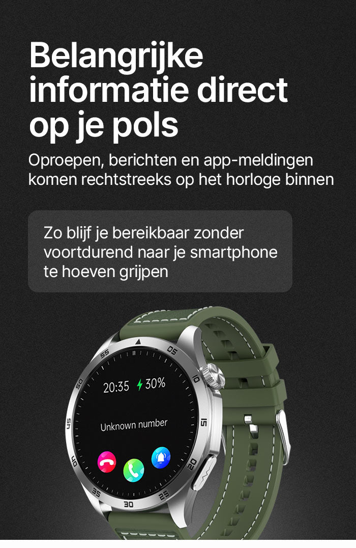 - ✓ Bluetooth-oproepen: bel rechtstreeks via het horloge met HD-geluid (keuzetoetsen, contacten, oproeplijst).